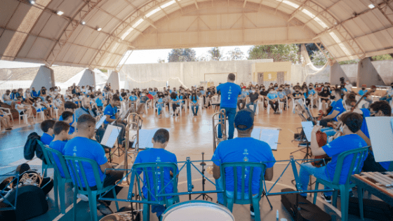Alfredo Gazin Orquestra Escola, de Douradina/PR, realizaram em celebração ao Dia das Crianças e ao Dia dos Professores no último dia 13 de outubro.